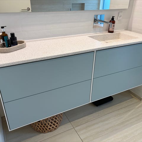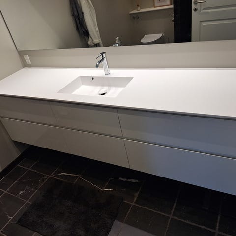 Snedker badeværelsesmøbel med corian bordplade med integreret håndvask