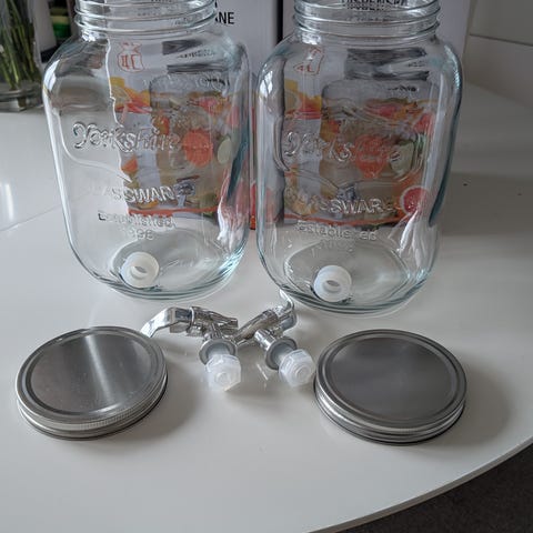 Dispenserens rustikke "Mason Jar"-look med indgraveret tekst giver et super hyggeligt udtryk på ethvert havebord eller til fødselsdagen.
