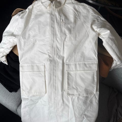 G-Star Raw frakke til herre i størrelse XL. Frakken er fremstillet i bomuld og er beige. Den har gennemgående knaplukning foran, høj krave med lynlåsdelt detalje og synlige stikninger. Der er diskrete G-Star Raw-logoer på ærme og kant. Egnet som overgangsfrakke eller let yderjakke i hverdagen.
