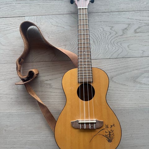 Ukulelen har et enkelt hak som vist på billederne, men er ellers som den skal være.