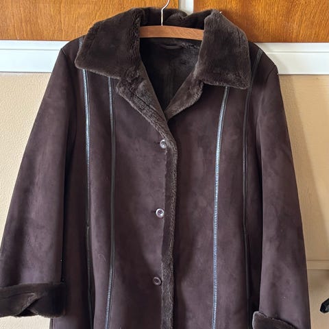 Jeg prøver at sælge denne skindjakke, som desværre bare hænger i skabet.