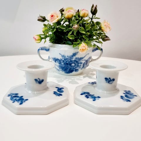Porcelæn, Blå Blomst lysestager samt små runde skåle, Royal Copenhagen RC, Flot sæt Blå Blomst