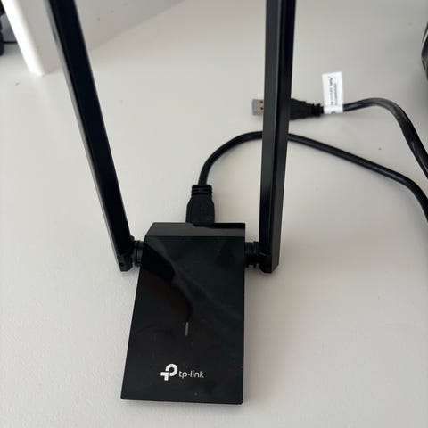 TP-Link Archer USB WiFi-adapter i sort. Trådløs netværksadapter til tilslutning via USB-port på computer. Leveres med USB-forlængerkabel og bordstander, som giver fleksibel placering af adapteren for bedre signalmodtagelse. Egnet til brug med computere, der mangler indbygget trådløst netværk eller har behov for opgradering af trådløs forbindelse.