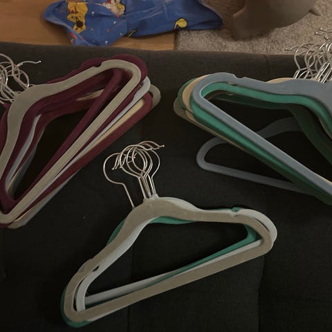 (1 Børne) og 1 voksen knagerække m. hylde og S-kroge. Skal bare lige tørres af.