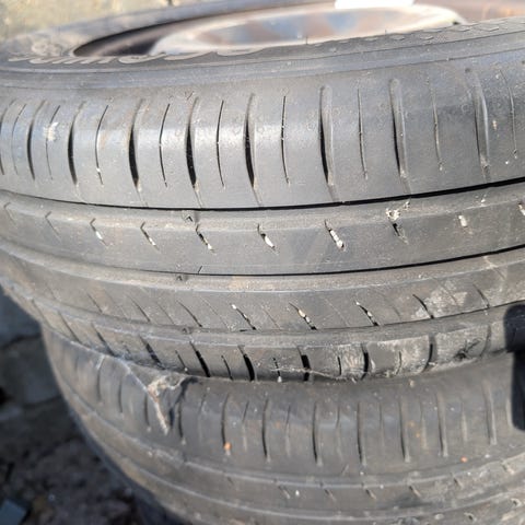 Hjulene fremstår mere eller mindre som ny monteret på Continental kvalitetsdæk med mønster på mellem 7-8 mm, så de har mange vintre endnu.