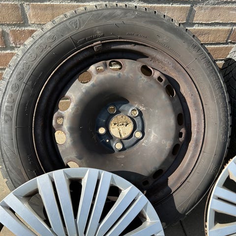 Vinterhjul med stålfælge 15” har siddet på Polo fra 2019.