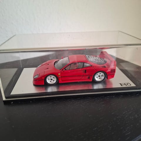 Herpa Ferrari F40 modelbil i rød farve. Modellen viser en Ferrari F40 med detaljeret karrosseri, åbnebare klapper og monteret på sort sokkel med modelbetegnelse. Leveres med gennemsigtig plastkasse. Original indpakning er medtaget men modellen er som ny.