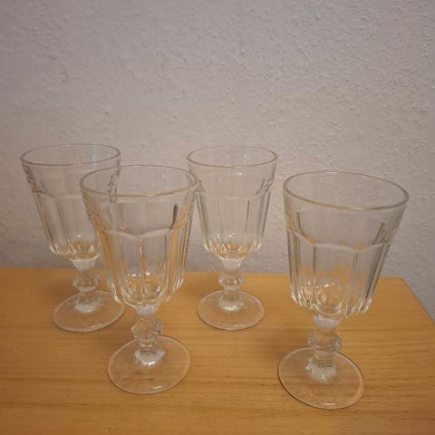 Glassene er mundblæst med håndformet, og drejet stilk. Glassene er pålagt guld på mundranden, samt på fodpladens kant. - Fra serien EJ64 designet af Einar Johansen.