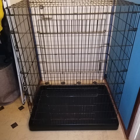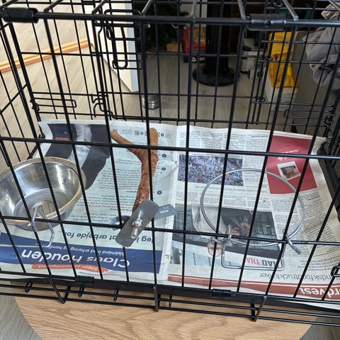 Hundebur( kan også bruges til katte, eller store gnavere) i metal med sort plastbund. Buret har gitterkonstruktion og aftagelige bundbakker i plast, som gør rengøring lettere. Egnet til transport eller som fast liggeplads for hund i hjemmet eller bilen. Kan anvendes til mellemstore til større hunde afhængigt af de præcise mål.