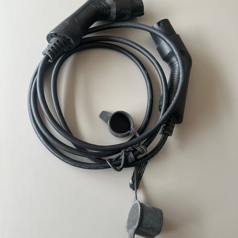EV ladekabel type 2 med kontrolboks. Kablet har gul ledning og hvidt håndtag på type 2-stikket. Kontrolboksen er hvid med indikatorlamper. Egnet til opladning af elbil via type 2-tilslutning, hvor der kræves ekstern kontrolboks mellem stik og bil. Yderligere tekniske specifikationer fremgår af den medfølgende brugsanvisning på etiketten ved kablet.