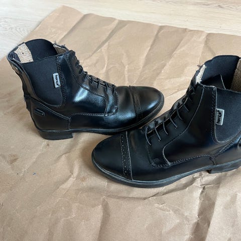 Howler sikkerhedsstøvler i brun læder i størrelse 40. Chelsea-model med elastik i siderne og stropper foroven, som gør dem nemme at tage af og på. Kraftig, mønstret gummisål for godt fodfæste. Velegnet som arbejdsstøvler. Der er købt en uld indersål som er lagt i støvlerne for bedre at kunne holde varmen. Kun brugt få gange men der er kommet lidt ridser på snuderne. Se billederne.
