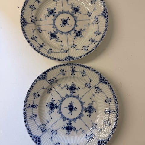 Royal Copenhagen Musselmalet stor, dyb tallerken model 565. 7 stk. i alt. Pris pr. stk. kr. 600. Ved køb af 7 stk. i alt kr. 4.000.
