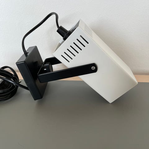 Flot retro væglampe fra 1970 erne. Giver godt koncentreret lys. Justerbar vægbeslag. Mål 14x6x6 cm. Har nogle mærker på vægbeslaget efter tidligere montering. Selve lamper er som ny !