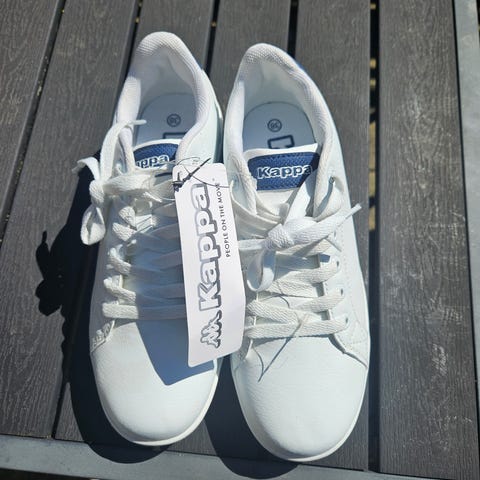 Kappa sneakers i str. 42. Modellen er i hvid med snørelukning og mønstret ydersål. Overdelen er glat og ensfarvet med diskrete syninger, og skoene har polstret kant for øget komfort. Velegnet som hverdagssko eller fritidssko.