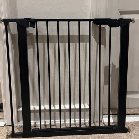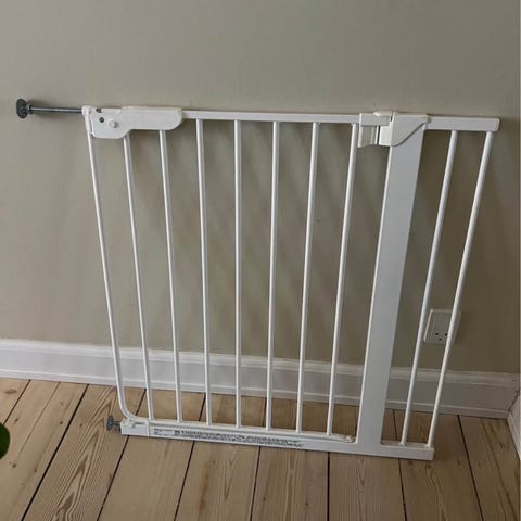 BabyDan sikkerhedsgitter i hvidlakeret metal.