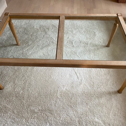- Pænt sofabord i lyst træ med glas i midten.