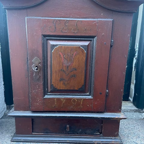 Tobaksskrin med blypresse, Træ og bly, 250 år gl.