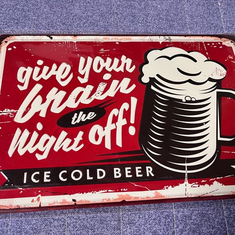 Biergarten skilt i sort med hvid tekst. Rektangulær form med klassisk skrifttype og lys kant rundt om teksten. Velegnet som dekoration til bar, udestue, haveområde eller lignende steder, hvor man ønsker et tydeligt Biergarten-skilt.