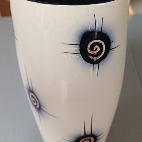 Unika fad / skål fra Kaehler designet af Heidi Fournier. Turkis, creme og sorte farver. Er desværre ikke signeret. Pæn stand uden skår eller revner. 23,5 cm i diameter og ca 5 cm højt. Sendes ikke, men kan hentes på adressen.