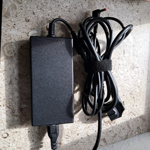 Acer strømforsyning / adapter i sort. Standard netadapter med fastmonteret strømkabel. Velegnet som strømforsyning til kompatible Acer-enheder, f.eks. bærbare computere eller andet udstyr, der bruger tilsvarende stik og spænding. Adapteren har mærkninger for internationale sikkerhedsstandarder på etiketten. Tag hele kassen
