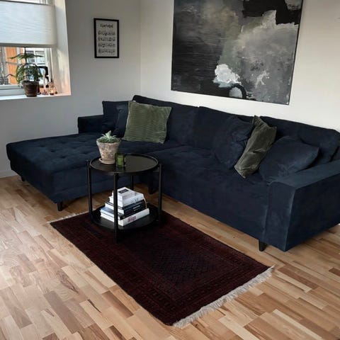 Smukkeste kongeblå sofa i velour-stof 💙