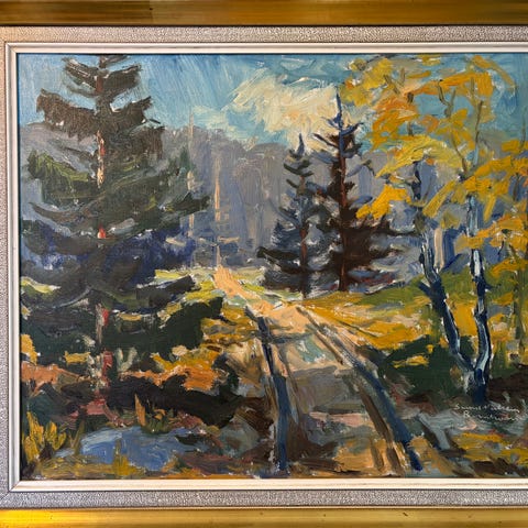 Motiv fra Gudhjem Bornholm. Højde 74 cm bredde 88 inklusiv ramme.