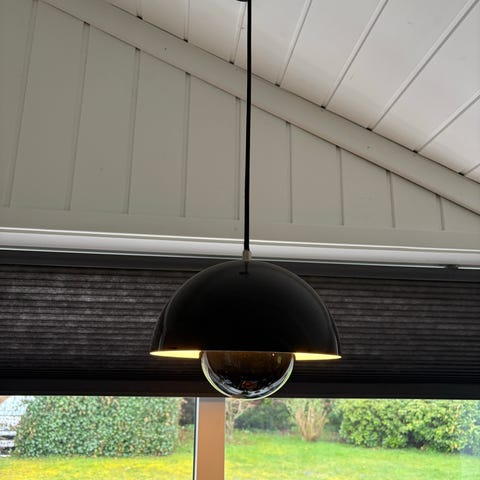 &tradition Flowerpot VP10 loftlampe i hvid. Designet af Verner Panton. Lampen har en diameter på 16 cm. Modellen bruger G9 Max 5W LED-lyskilde, som ikke er inkluderet. Velegnet som bord- eller stemningsbelysning i hjemmet.