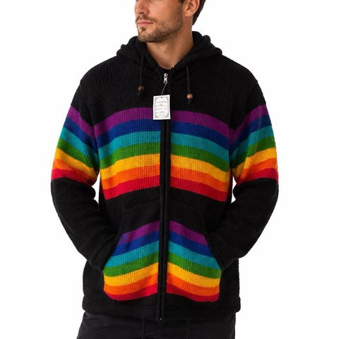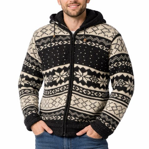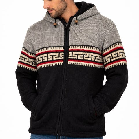 Håndlavet uldjakke med levende tribalmønster – Nepali Artisan-hættetrøje XXL