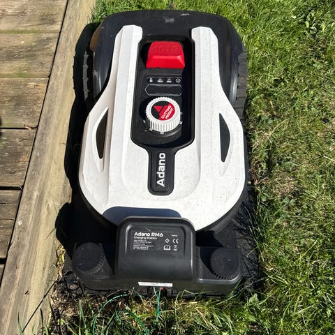 Adano robotplæneklipper i hvid/sort plastkonstruktion. Modellen har betjeningspanel på toppen med drejeknap til indstilling af klippetider samt tydelig rød stop-knap. Egnet til automatisk græsslåning i have eller på græsarealer, hvor robotten kan køre selvstændigt inden for et afgrænset område. Drift via el/batteri Designet til at køre på almindelige græsplæner med mindre ujævnheder. Brugt cirka 1 sæson.