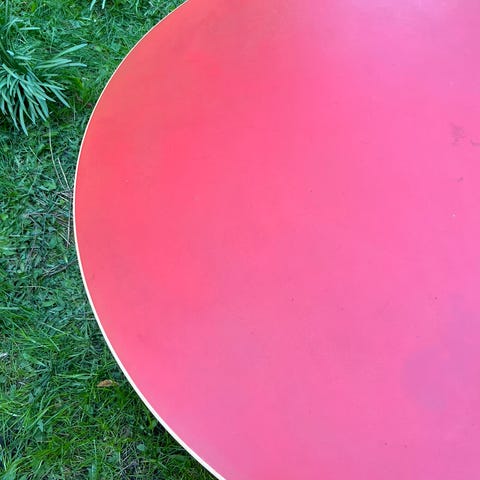 Sofabord i rød/orange nuance. Brugsspor med ridser (se billeder). Fuldt funktionelt.