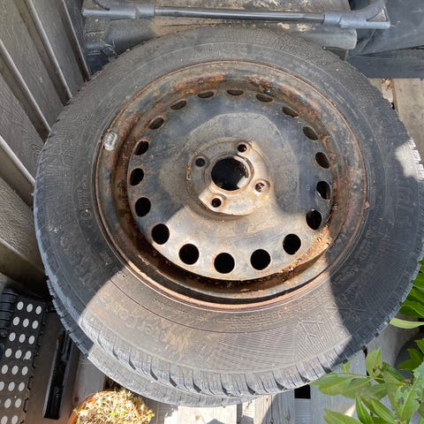 jeg sælger disse hjul, da jeg ikke længere har brug for dem. dækkende er kun blevet brugt i en sæson, de blev produceret i 2025 og mærket er goodyear. Der er ikke mulighed for transport.
