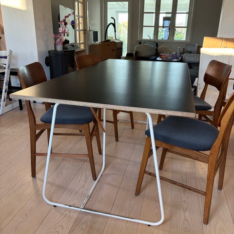 Bordet er nogle år gammelt, men fremstår i rigtig fin stand. Der er kun en enkelt mindre ridse i bordpladen (se billede).