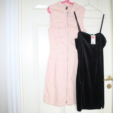 Str. 36 Ubrugt sort stropkjole i velour med lille slids foran. Fra H&M. Opr. pris 99 kr. Købt på udsalg til 40 kr. Stadig med mærke. 2 billeder.