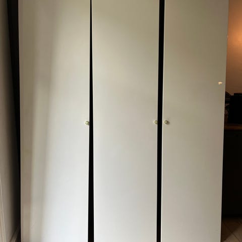 2 hvide PAX skabe fra Ikea med hvide låger.