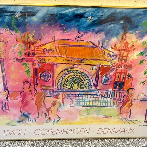Flot gammel ramme med fine detaljer, med Tivoliplakat.