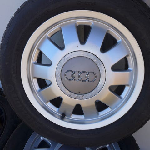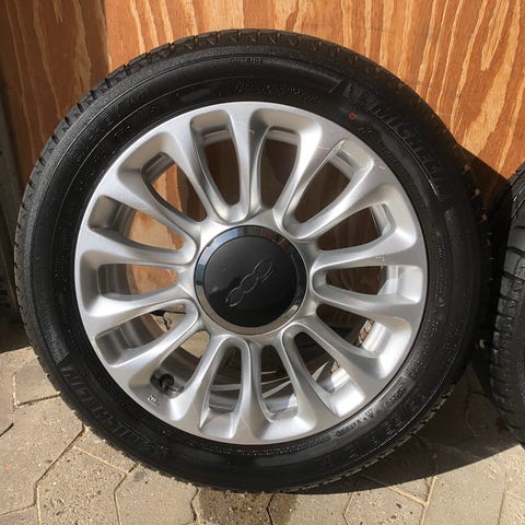 Brugte originale Fiat 500 Lounge fælge - monteret med ældre sommerdæk.