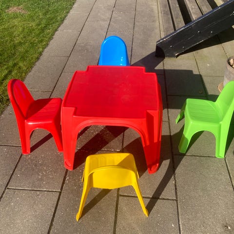 IKEA børnesæt med bord og 2 stole i lyserød. Sættet består af et firkantet bord og to matchende stole i børnestørrelse. Egnet til brug i børneværelse, legeområde eller som tegne- og aktivitetsbord. Overfladerne er glatte og kan tørres af med en fugtig klud.