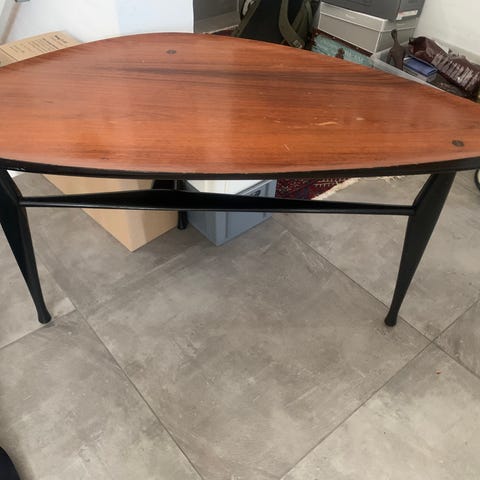 YNGVE EKSTRÖM. sofabord, „Rytm“, teak med sortlakeret bund, Westbergs Möbler, Tranås, 1950 erne