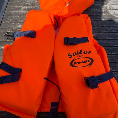 Secumar Bravo Print redningsvest til børn med vægtinterval 20-30 kg. Vesten har opdrift på 40N og er designet i en orange farve med mønster. Udstyret med justerbare remme og spænder for tilpasning. Egnet til brug ved sejlads og andre aktiviteter på vandet, hvor der kræves personlig opdriftshjælp.