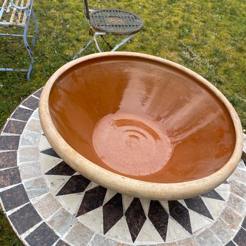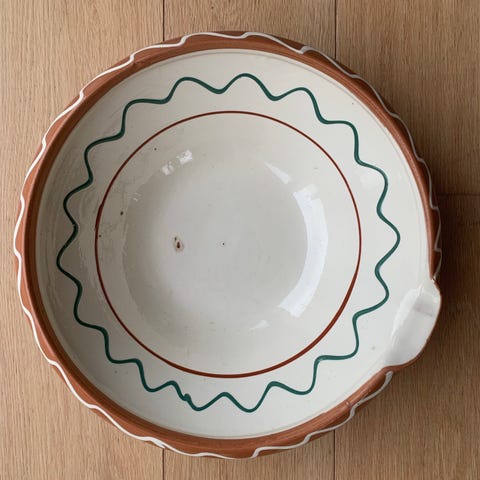 Flot gammelt lerfad. Diameter 33 cm.