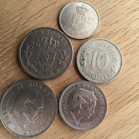 Samling danske mønter, primært fra 1960’erne og 1970’erne.