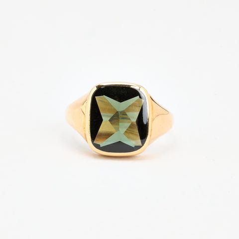 Signetring i 8K guld med en rød sten, Str. 65-Guld