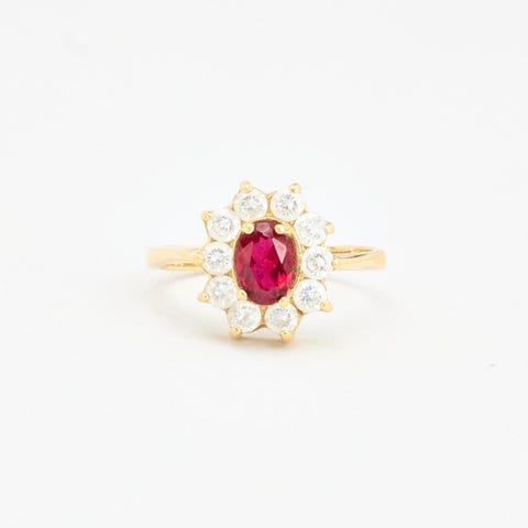 Antik Rostretring i 14K guld med flere røde sten, Str.