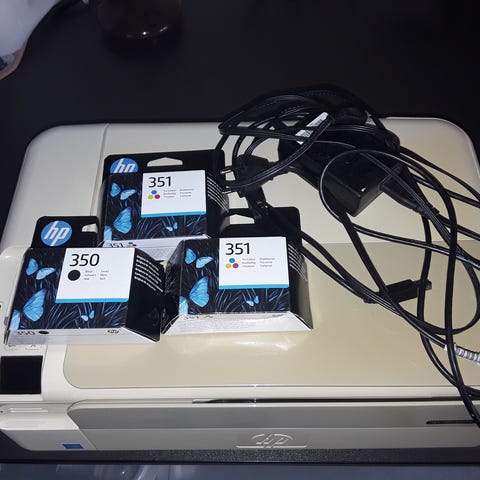 Printeren bruger to patroner: én sort og én trefarvet (cyan, magenta, gul).