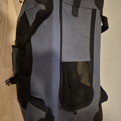 Fint foldbar transportbur i størrelse XL2 (45 kg- goldenretriever) med målene 91,4*63,5* 63,5 cm. Buret er udført i gråt stof med sorte forstærkninger og netpaneler i siderne for ventilation og udsyn. Lynlåsåbninger og bærestropper på toppen, så det er nemt at transportere. Egnet som transportbur eller midlertidigt opholdssted til store hunde.