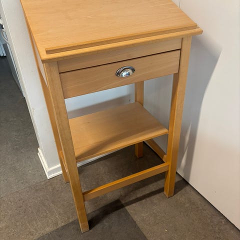 Træ natbord med én hylde og skabsdør, præget af en klassisk og varm finish, der tilføjer charme til soveværelset.- Bemærk at mail, chat og beskeder ikke besvares, og varen skal købes på knappen "Gå til varen". Efter reservering af varen har du 10 dage til at afhente den i den butik, varen er på lager i.