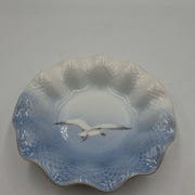 Delikat tepotte af porcelæn med elegant blåt design, dekorative mågemotiver og gyldne detaljer. Ideel til servering af varme drikke.
