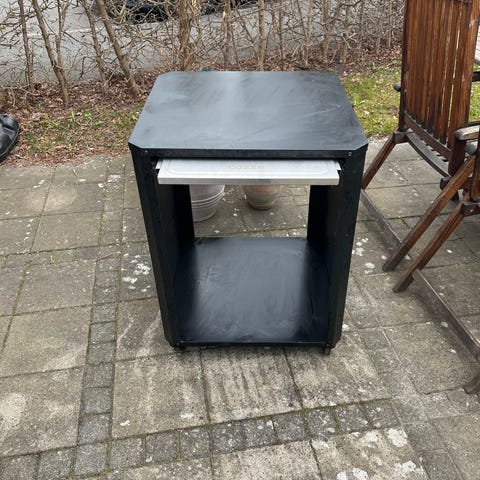 Gratis - Serveringsvogn i hvid plastik med hjul. Trænger til en våd klud.