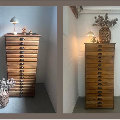 Retro skuffedarium i massiv fyrretræ