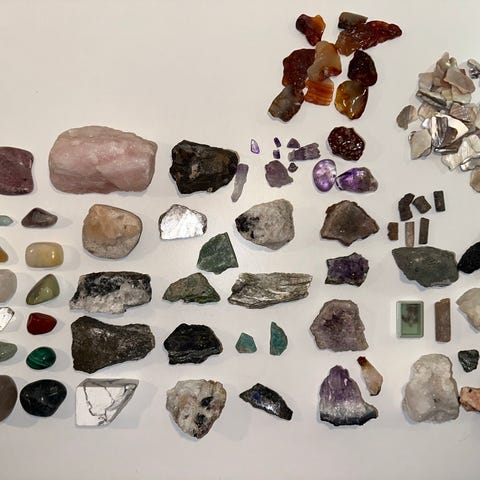 Blandet samling mineral- og råsten små og mellemstore